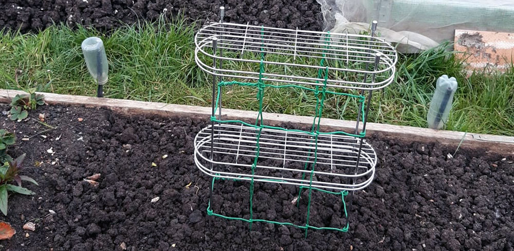 Lukas has put a dismantled clothes drier, or clothes horse, to good use. Interesting use of a discarded household item. Deserves a prize for recycling.