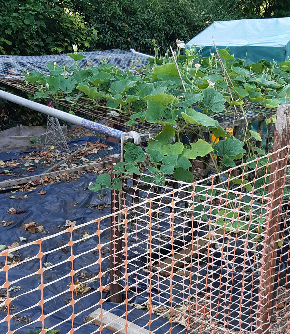 There are a number of trellises on the site to support gourds of various kinds. Irfan has made good use of various salvaged materials to construct a very solid looking trellis. Deserves a prize for building and construction skills.